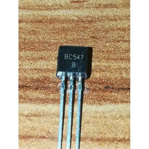 The BC547 is a widely used NPN bipolar junction transistor (BJT) designed for low-current, medium-voltage, and low-power switching or amplification tasks. It operates with a maximum collector current of 100 mA and a collector-emitter voltage rating of 45V. With a DC current gain (hFE) ranging from 110 to 800, it is suitable for signal amplification, switching applications, and interfacing with microcontrollers. Commonly found in hobby electronics, consumer devices, and control circuits, the BC547 is available in a TO-92 package, making it compact and easy to integrate into breadboards and PCB designs.